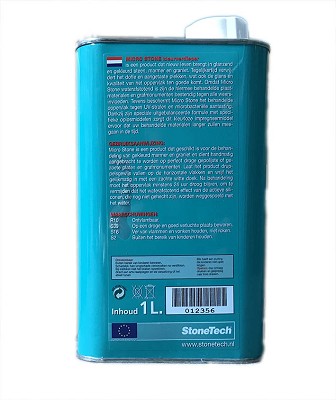 StoneTech Micro Stone: Herstel, Bescherm, Geniet van Tijdloze SchoonheidStoneTech Micro Stone, een symfonie van innovatie en eenvoud, is nauwgezet ontworpen om gekleurd marmer, graniet en composiet nieuw leven in te blazen. De toepassing is moeiteloos, waardoor zelfs de meest kostbare stenen oppervlakken kunnen stralen als nooit tevoren.Breng de Micro Stone gelijkmatig aan op de horizontale vlakken en masseer het in met een zachte witte doek. Laat dit unieke product in het oppervlak trekken, en zodra droge plekken verschijnen, verwijder je eenvoudig het overtollige met een zachte droge doek.Na de behandeling verdient je oppervlak wat rust. Laat het minstens 24 uur drogen, zodat de actieve siliconen zich optimaal kunnen hechten. Een cruciale stap: zorg ervoor dat het oppervlak grondig is gereinigd vóór het aanbrengen. Voor werkbladen en aanrechtbladen raden we StoneTech Werkbladreiniger (012300) aan, terwijl vloerreiniger (012270) ideaal is voor vloeren en wanden.StoneTech Micro Stone is beschikbaar in handige formaten van 250 ml en 1 liter, jouw onmisbare partner in het herstellen en beschermen van kostbare stenen oppervlakken. Met een verbruik van circa 10-15m² per liter behaal je groots resultaat met slechts één flesje. Geef je oppervlak zijn uitstraling terug met StoneTech Micro Stone en laat hun tijdloze schoonheid stralen.En hier is nog een geruststellend detail: Micro Stone is Food Proof, waardoor het niet alleen je stenen, maar ook jouw gemoedsrust beschermt.