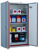 Bewaar uw lijmen, impregneermiddelen, spuitverf en andere licht ontvlambare stoffen op een centrale plek. Brand- en lekveilig achter slot en grendel. De brandveiligheidskast is 90 minuten brandwerend en bij brand zorgen de dichtschuimende stippen ervoor dat de kast hermetisch wordt afgesloten. Voor de bescherming tegen lekkage is de kast uitgevoerd met een opvangreservoir van ca. 45 liter. Kast is voorzien van aanlsuitng voor onluchting