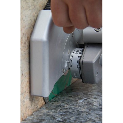 Een bijzonderheid is de veerbelaste aluminium beschermkap met een kunststof steunvlak voor vlak- of wandgemonteerd zagen.